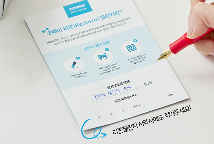 코웨이 리본 챌린지 참여 키트로 깨끗한 지구를 만들고자 하는 마음을 담아