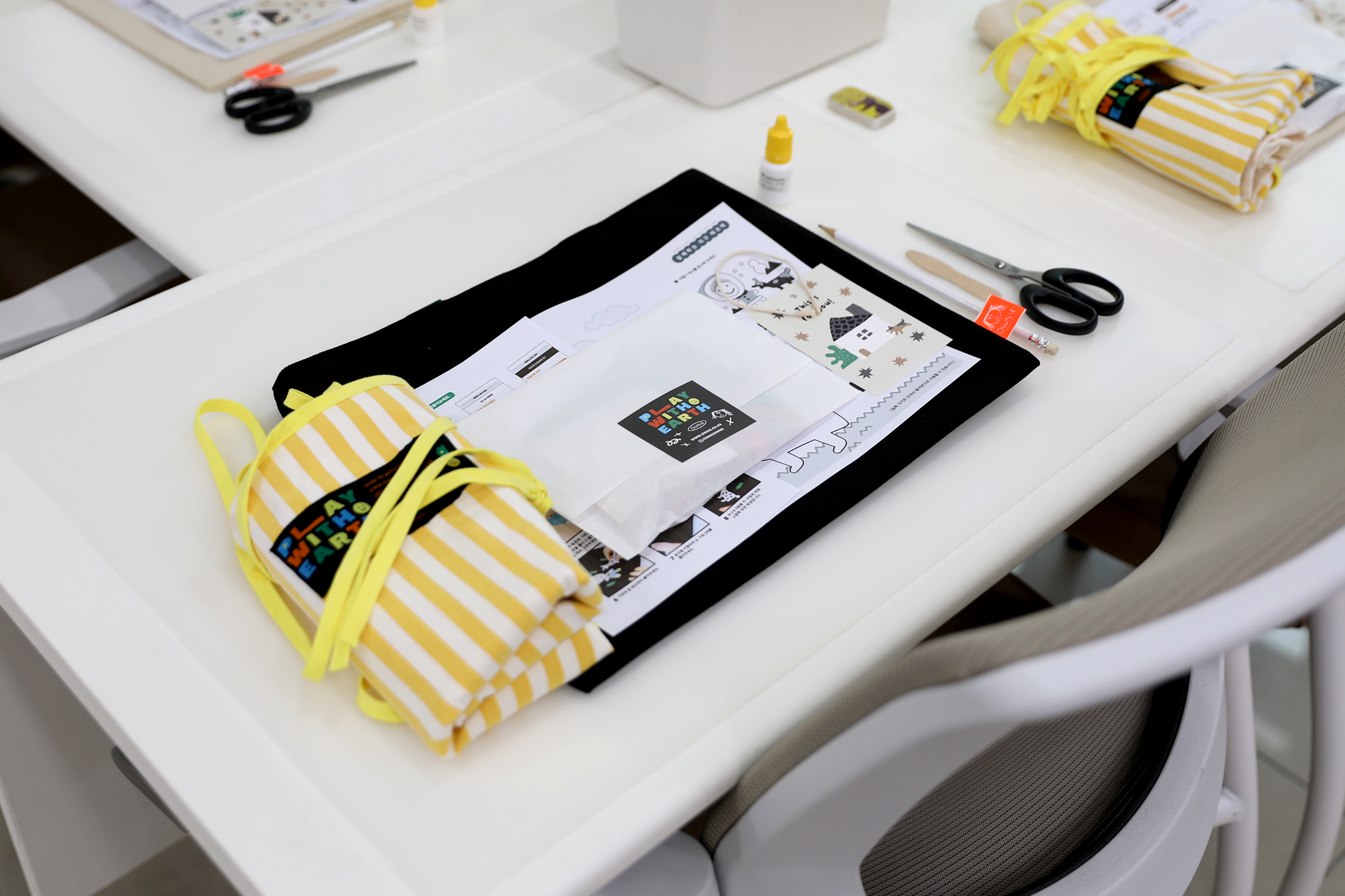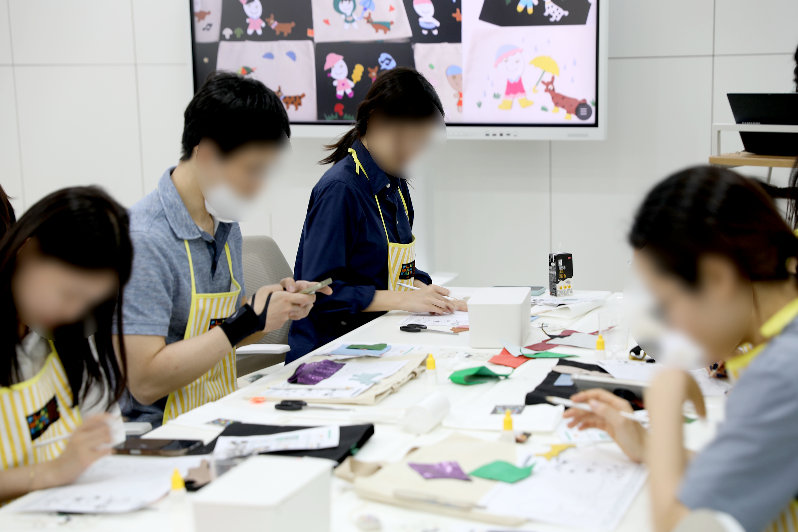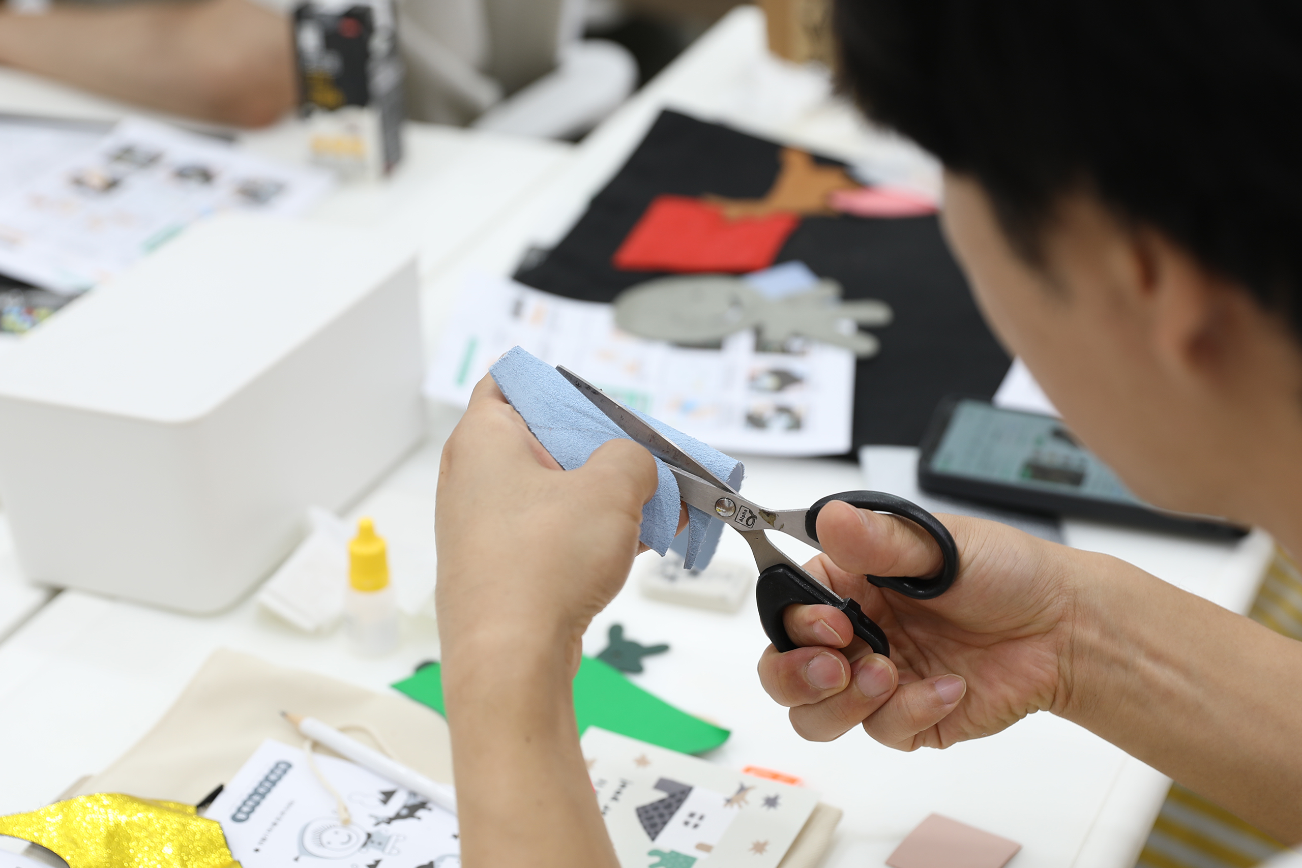 환경 교육 강의 후 자투리 가죽으로 가방을 장식하여 완성합니다.