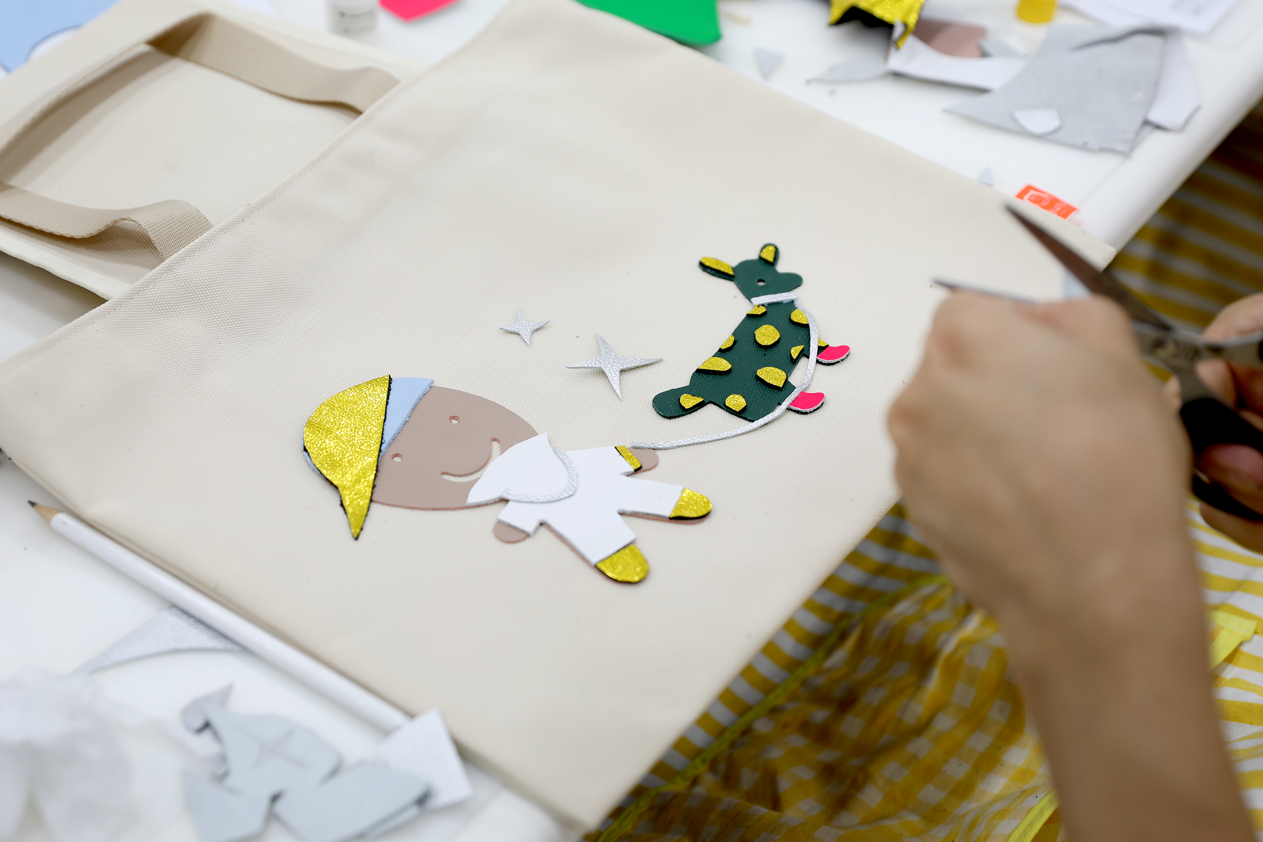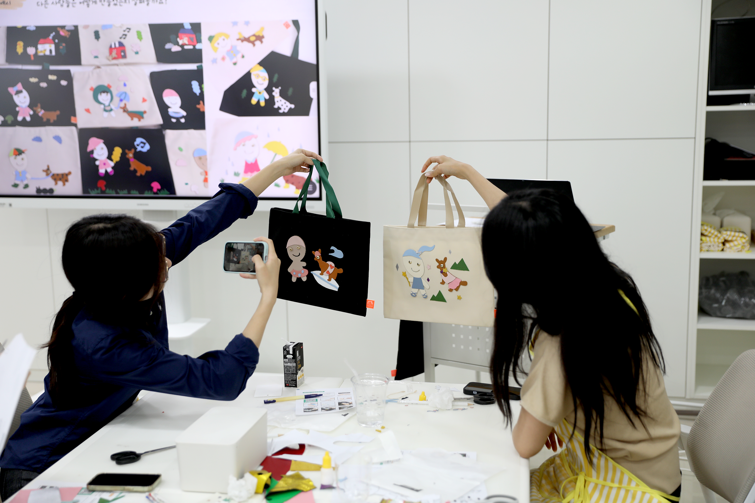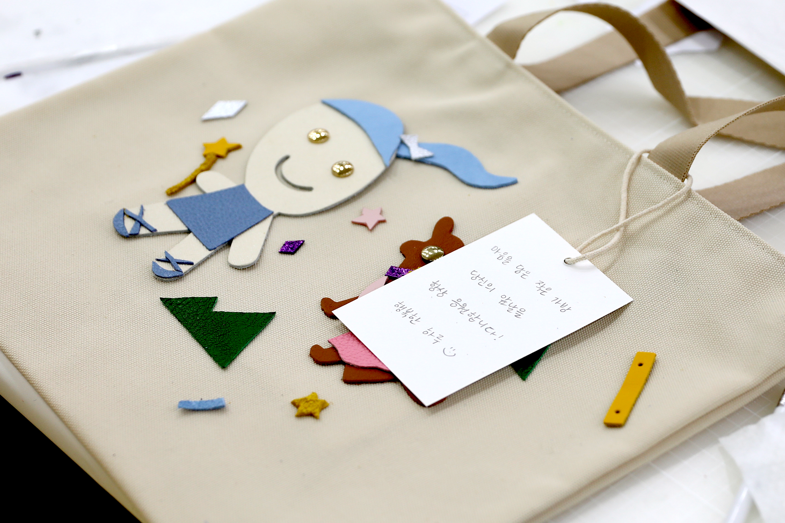 - 가죽 아플리케 에코백 S – 아이와 강아지