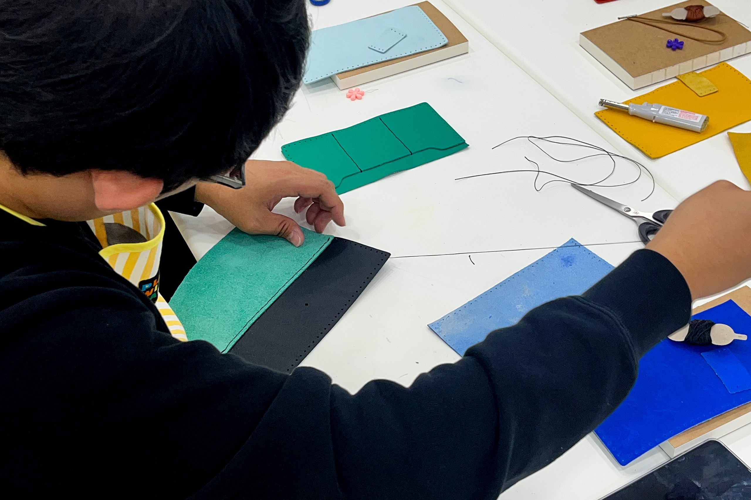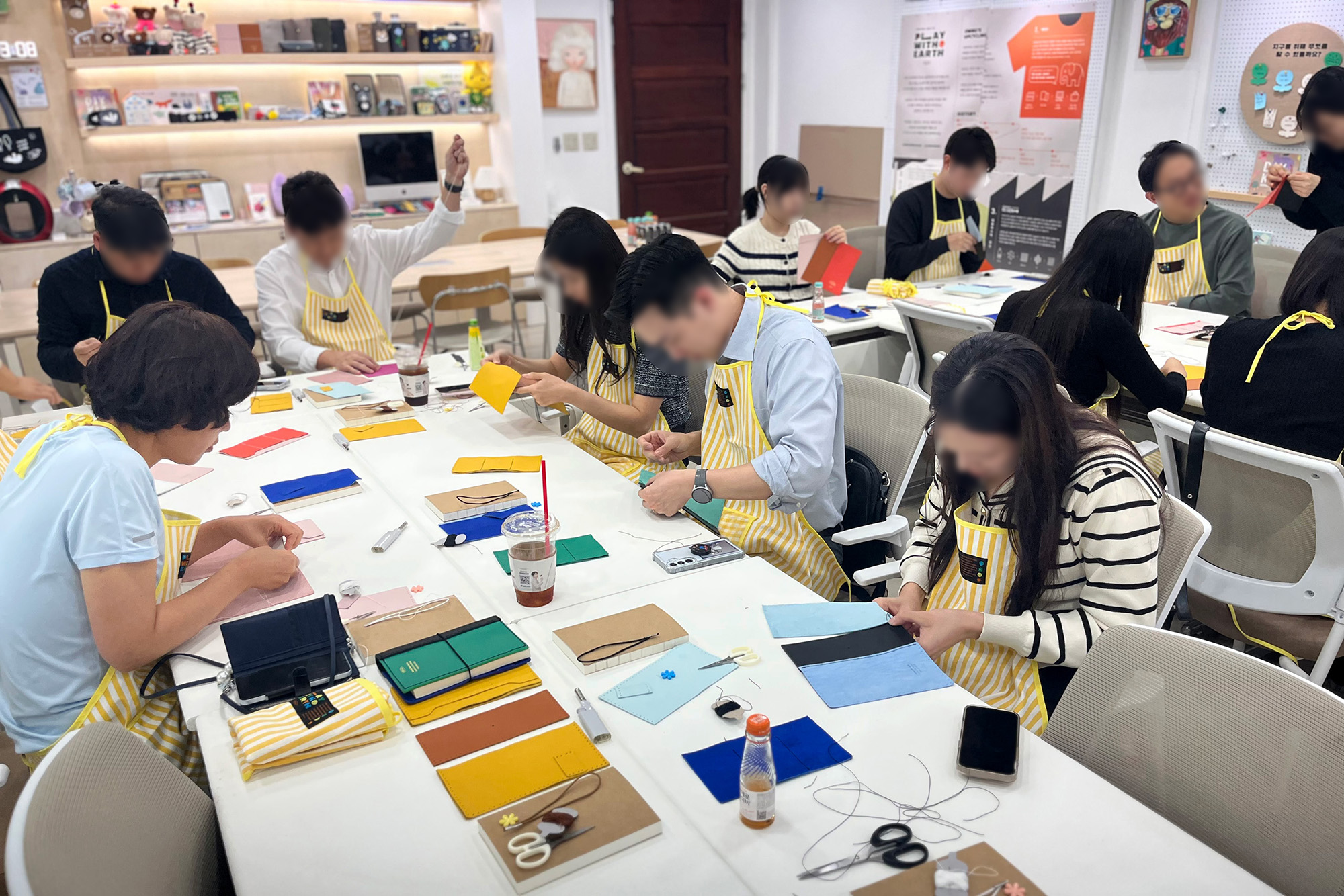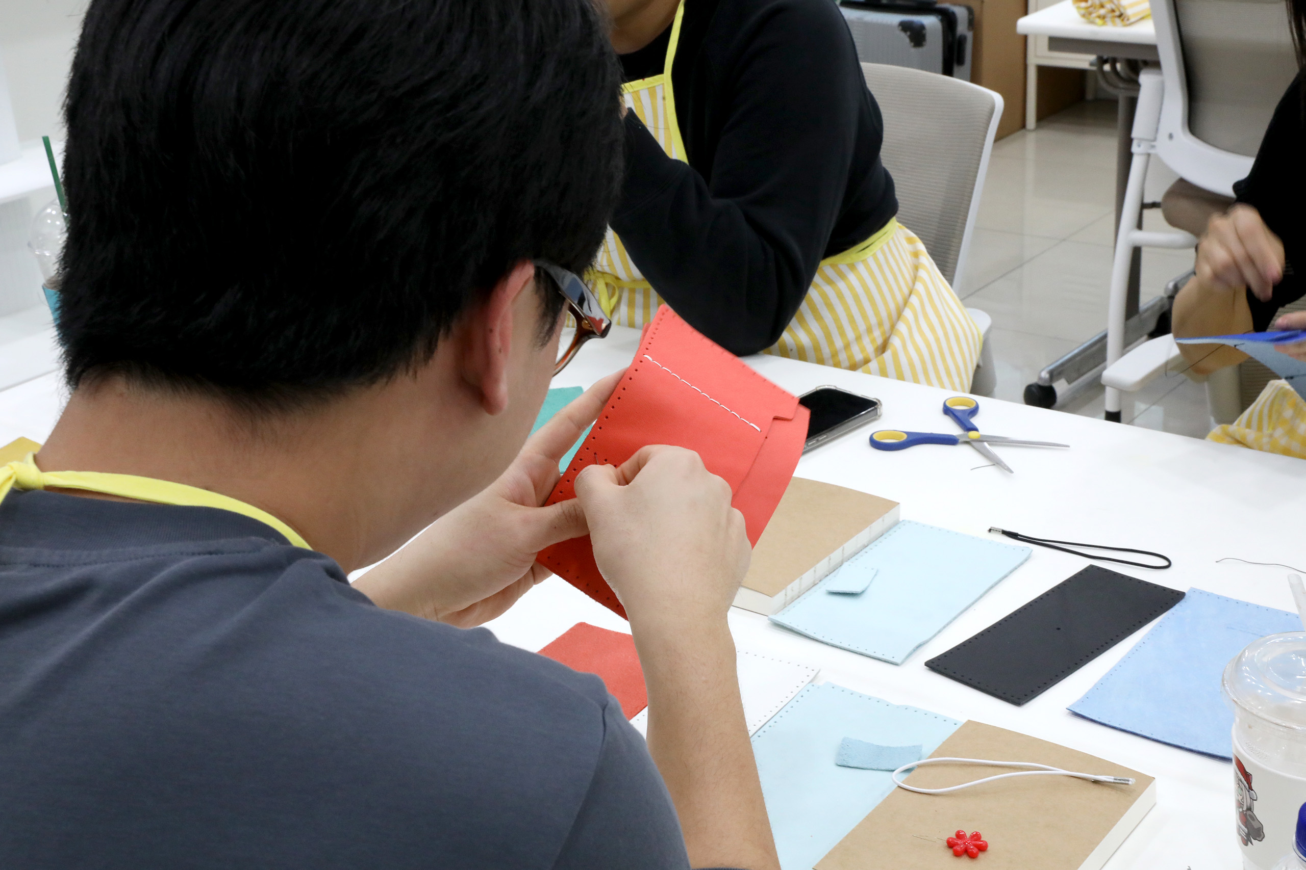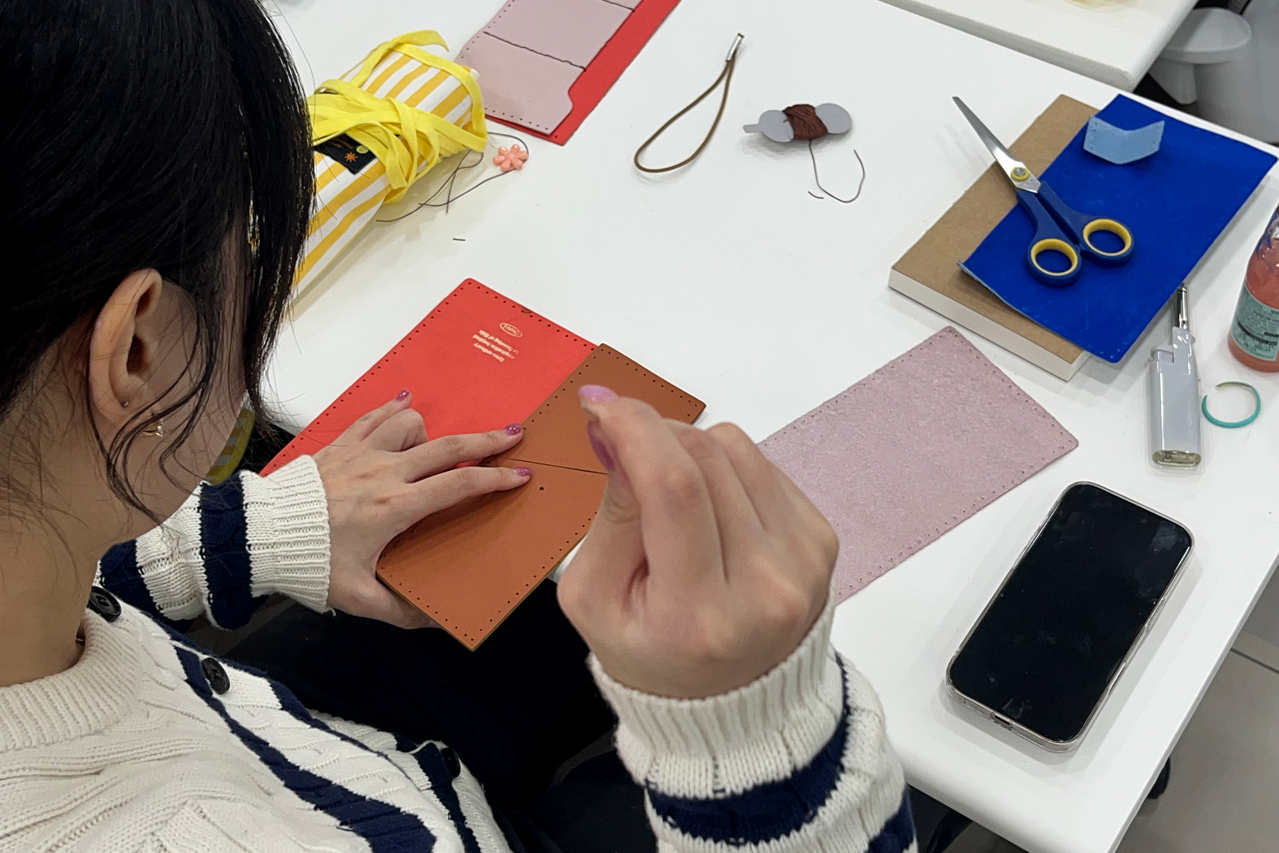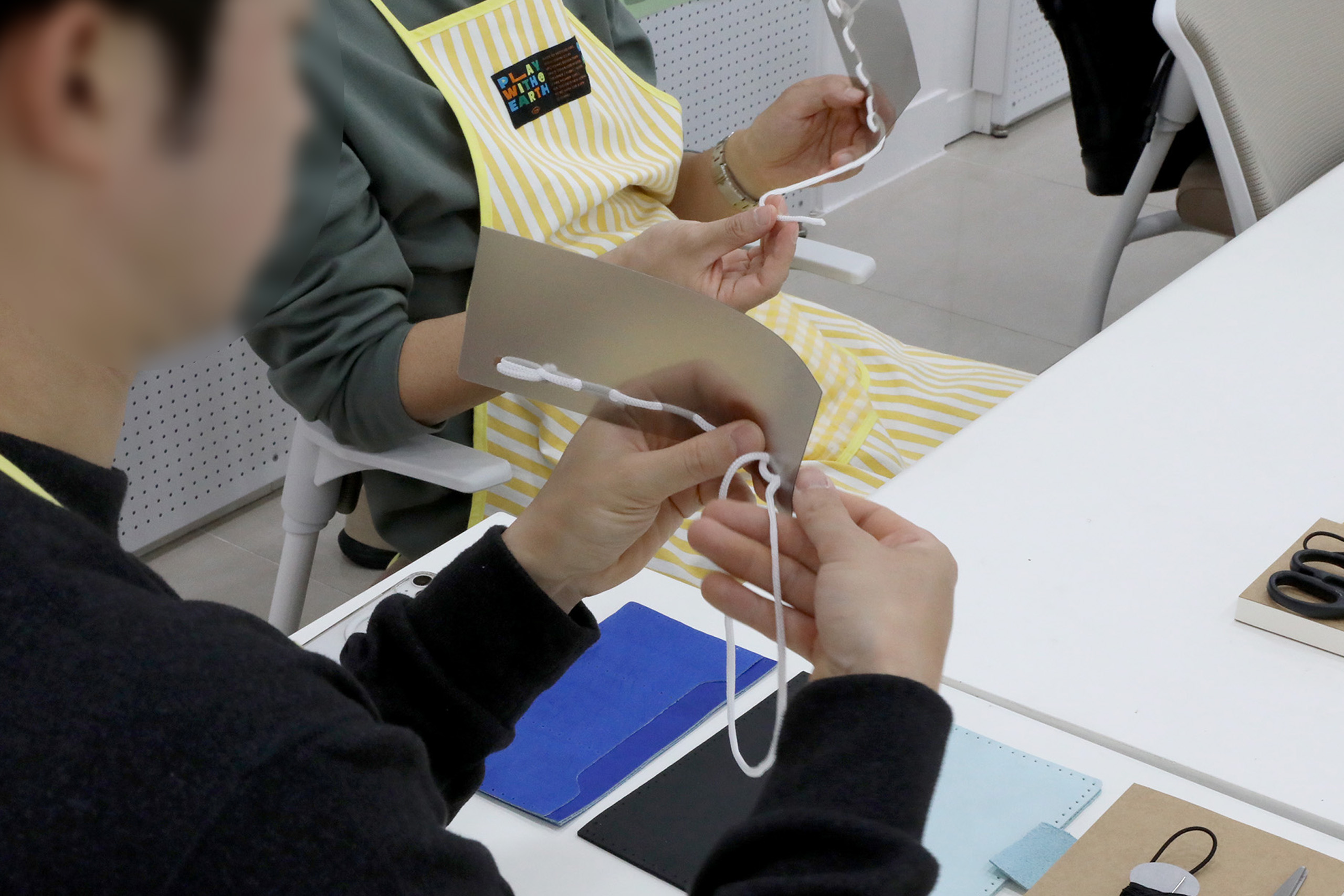 제5차 프로그램에서는 환경 교육 후 가죽 재단물을 바느질해 다이어리를 제작하였으며,